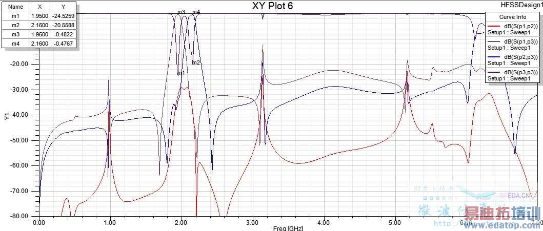 开始是在ADS中仿的,看结果不错就用HFSS验证了一下,有些区别,但通过调节耦合度和一些尺寸基本能和ADS结果一致。具体的版图和ADSHFSS仿真结果在附件中。