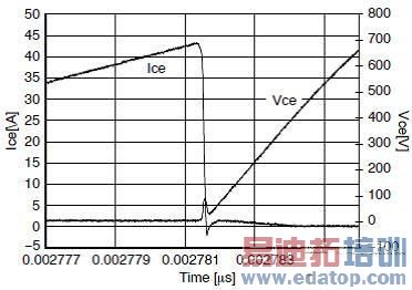 从图3中可以清晰地看到电磁炉的关闭损耗波形。影响这些损耗的因素包括IGBT残余电流、VCE歪曲率及开关频率。残余电流来自于IGBT关闭后漂移区留下的少量载流子。影响这些少量电荷载流子结合率的因素包括掺杂深度、缓冲层厚度及使用的掺杂技术。开关频率由所要求的炊具功率等级及应用的开关控制算法决定。重要的是在设计及开发过程的每一个阶段确认目标应用中的IGBT性能。性能的确认可以通过测量应用中IGBT损耗来实现。