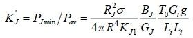 压制系数K'J是衡量雷达对某一种压制性干扰对抗能力的通用标准。它是指干扰对雷达实施有效压制时,所需最小功率PJmin和雷达发射功率Pav之比。如果忽略功率的传输损耗及极化损失,K'J可表示为: