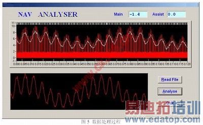 对于此导航信号的测量,在信号采集阶段,首先以载波频率设定下变频器的中心频率等参数,再进行中频数字化;信号分析阶段首先要提取信号包络,然后在时域进行相位计算。如图 4,图 5 所示。