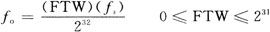 通过对FPGA编程,主要完成了对AD9959控制功能和串口收发功能。AD9959内部集成了4个DDS内核,每个DDS内核都集成了32-b的相位累加器和相位一幅度转换器。每路DDS输出的信号频率可以通过下式来计算: