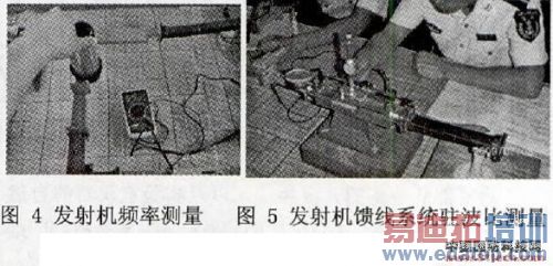 图 4 发射机频率测量图 5 发射机馈线系统驻波比测量