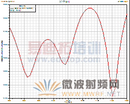 图4 改进后的schiffman移相器 最终单层微带和差网络内部电路图如图5所示,其中端口1为差口,端口2为和口。利用HFSS仿真优化设计,图6为其端口反射系数,图7为直通及耦合度,图8为其和通道相差及差通道相差,图9为其和差口间的隔离度。