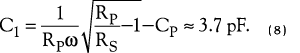 2.算出第一个反相器输入阻抗RP和50Ω RF源之间实现匹配的网络匹配初始值。用公式6和7计算出匹配网络中各元件的值(参考文献3)。