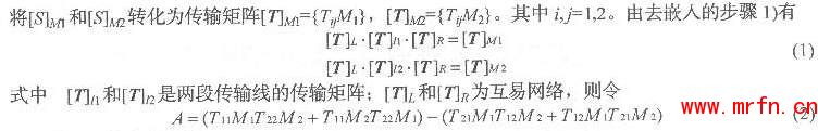 [T]D={Dij}(i,j=1,2)是DUT的传输参量。由矩阵运算改写成以下形式