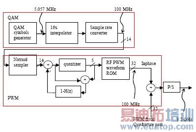 如前所述,数字PWM的所有的信号处理算法运行在PRF频率。唯一必需的高速电路是最终的PWM波形发生器。因此,在现存FPGA器件上构造全数字QAM-PWM调节器是可行的。