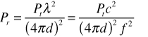 这里假设两条天线都具有单位增益。这个方程显示,对于固定的发射功率Pt来说,接收到的功率将随距离d的平方以及频率f的平方而降低(或随着波长λ的平方而增加)。如果接收到的功率低于对信号正确解调所需的最小功率(称为灵敏度),该链路就会被中断。