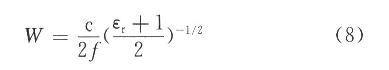 式中:W为天线的宽度;c为光速;f为工作频率;εr为介质相对介电常数。