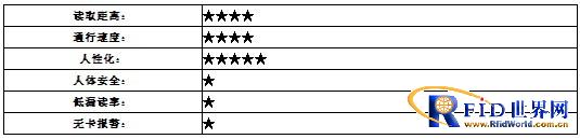 高频RFID的频段在13.56Mhz,分为两种,其中一种为近距离14443协议。这种技术的读取距离在10cm左右,在“家校通”的使用中通常是采用壁挂考勤机学生主动去刷卡的方式。当然如果是使用壁挂机的方式是无法进行无卡人员报警的。所以在近距离高频RFID的应用时也有商家使用通道的方式进行。由于需要人员停留主动刷卡,近距离高频RFID的技术通行速度比低频RFID还要慢。但是近距离高频RFID的安全性较好,所以更多的是使用在高校或者企业园区中对于涉及到餐饮、洗浴消费的时候使用。在卡片信息漏读率中基本上也是所有技术中最小的。