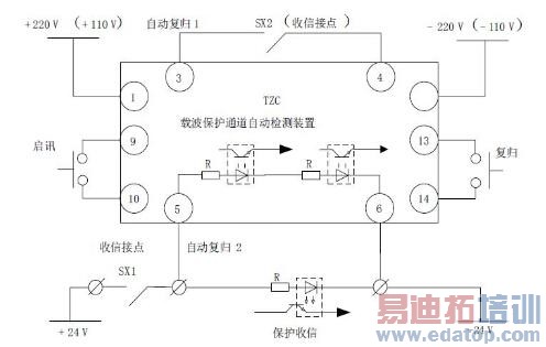 图4 载波保护通道自动检测装置外围回路接线图