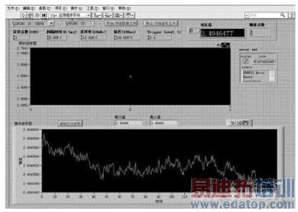 设计的采集程序界面如图3所示,当点击开始,设置每秒钟的采样点数与间隔时间(积分时间),点击开始存储文件后就开始采集数据显示并存储。可以根据即时波形图与整体波形图来得到测量电压的信息。