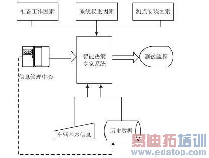 最终测试流程的确立还应考虑测试目标、前期基本信息采集、历史数据等多方面因素的影响,可采用智能决策专家系统,综合考虑多种决定因素,自动生成测试流程。系统结构如图3所示。