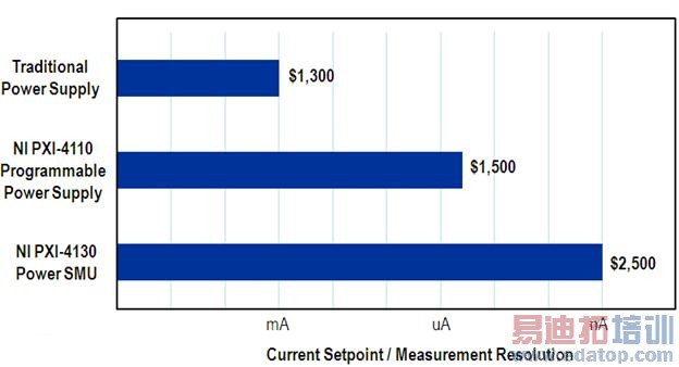 图5. NI公司PXI高精度电源的价格和精度的比较