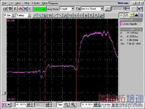 图8. 波形与图7相同,但为扩展后的波形,测量延时。