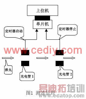 在我室研制的某型测控系统中,遇到一弹丸状物体的初速测量要求,速度范围在0~150m/s,要求测速模块实现成本低、可靠性高,测速数据送上位机显示。