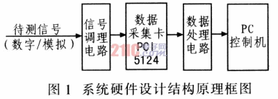 系统硬件设计主要包括PC控制机和高速数据采集卡。由于许多插入式的数据采集DAQ(Data Acquisition)设备采集数据不仅受到采样速率的限制,而且受到板载内存和数据到PC机内存的传输速率的限制。