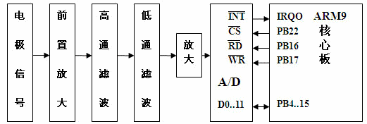 检测输入模块包括差分测量放大器、低通和高通滤波器、增益放大器以及 A/D 转换电路,如图3所示。