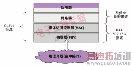 图1:基于802.15.4的ZigBee提供网络层和应用层规范。