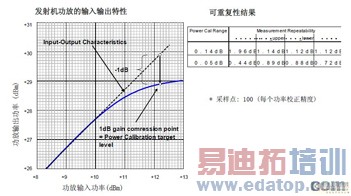 [图 1]0.14, 0.05, 和0.03 dB的功率校准范围作为功放1dB压缩点目标输出功率精度,功率校准精度的增加,将会使EVM,ACP,和2HD可重复性相应增加。