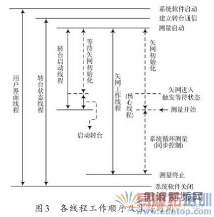 以往基于单线程的简单测量系统,对用户操作的响应以及多任务之间的切换需要使用"中断处理"来完成,极大地影响了系统的实时性和工作效率,测量过程中软件进入数据读取与存储的循环过程,使得用户界面进入"假死"状态,无法对测量进行控制和了解系统测量的实时进度。为了弥补这些不足,需要做到多任务的并行工作,而多线程技术以其避免阻塞、同时执行多项任务、减小运行过程和用户界面的相互影响,以及最大程度地利用多处理器性能的独特优点很好地满足了这一要求。