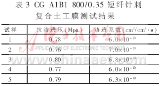 利用该仪器对某厂生产的短纤针刺土工膜CG A1B1 800/0.35进行测试,结果如表3所示。