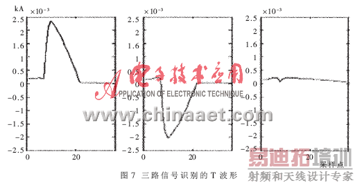 在应有调制信息的各个位置依次识别,然后根据各路信息传输的码图来判定信息位是“1”或“0”。这样可以很好地将接近0值的样点值干扰排除掉,达到很好的识别效果,而且采用这种算法运算量很小,只需要将待识别波形样点值依次与门槛电压值比较便可。