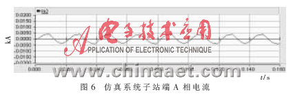 ,用户端电流经过变压器到达子站端时电流仅为原来数值的0.04,调制信号幅值也同时会相应减少,图6中的电流畸变已经非常微弱。