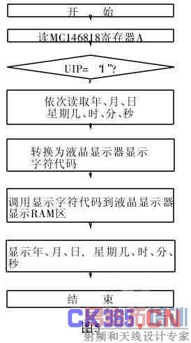 ①利用更新结束中断。因每次更新周期结束产生中断,利用中断服务程序,CPU读取时间和日历的值,在退出中断服务程序之前,CPU应对寄存器C中的IRQF、PF位清零。