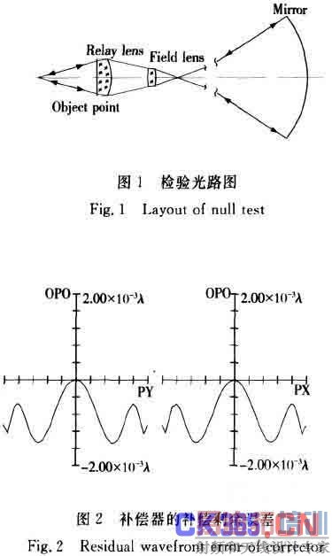 Φ1.2 mF/1.5抛物面主镜的非球面度为0.087 mm,面形要求为0.033λ(RMS)。本文详细介绍了主镜补偿检验所用补偿器的设计、加工、标校及最终主镜面形检测的情况,特别是补偿器使用前质量的确认,为提高补偿检验的可靠性奠定了基础。