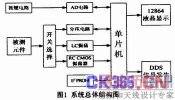 万用表是电气、电子行业中常用的仪器之一,本文通过对MCS-51单片机进行电路及软件开发,实现电阻、电感、电容的精确测量,同时利用DDS芯片发生任意频率波形。其系统整体结构框图如图1所示。
