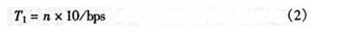 不论采用哪种通信规约,对信息的传送都有比较严格 的规定,超过时间限制,系统会认为通信失败,尤其是对于遥控信息、变位遥信等重要信息。而建立由公话网代替专用通道的模型,更要注意这个问题,因为公话网线路比较长,带宽比较窄,还要通过交换机等因数,使得必须研究这个模型的数据传送时间。一般通信规约要求重要信息的传送时间单向不得大于3 s,这个时间用T来表示,而信息在RTU与主站传送的各个环节消耗的时间用T1、T2表示,这将得到一个约束条件,式(1)中T1表 示信息在线路上传送的时间。这个时间主要是由波特率决定,由于程序采用异步通信模式,每个传送的字节必须加一位起始位,一位停位,所以实际上传送一个字节是10位。计算公式如下: