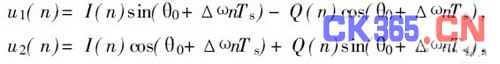 式中,△ω为载波频偏,θ0 为载波相位,则: