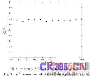 合上述两个方面,我们得出:当把光看成两束偏振方向互相垂直的完全偏振光的叠加时,偏振对HBT实验的影响体现在这两束光相位差的随机程度上。实验上,我们使激光通过1∕4λ波片获得偏振态可调的完全偏振光,通过将两束振动方向垂直的非相干线偏振光叠加获得偏振度可调的部分偏振光,并分别就二者对HBT实验中的g(2)进行了测量。实验结果均与理论计算符合得较好。