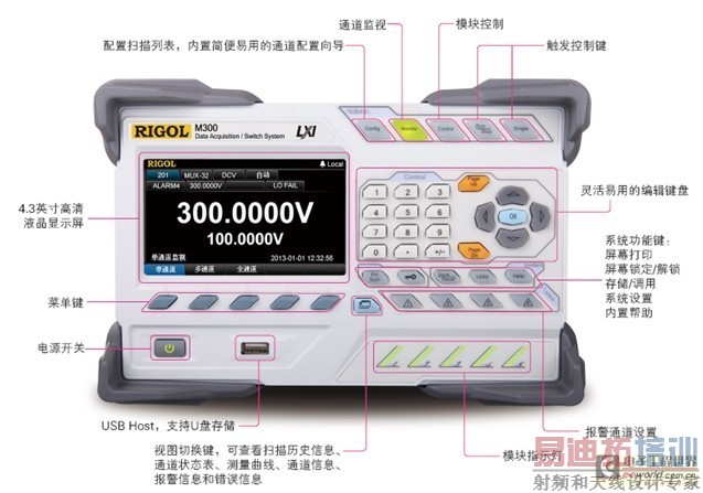 近日,北京普源精电科技有限公司(RIGOL)宣布推出数据采集/开关系统---M300系列。这款产品普遍应用于生产线,科研院所和高校实验室。针对研发阶段的产品性能测试,生产过程中的自动化测试,等多测试点,多种信号测量等应用, M300系列将精密的测量性能与灵活的信号连接功能相结合,可提供高效便捷的解决方案。
