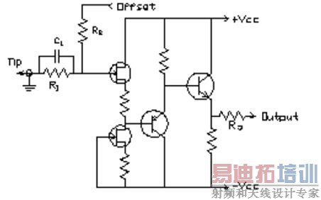 对于许多应用要求高的阻抗和频率(如2GHz以上),则有源探头成为有力的工具。有源探头使用具有高的输入阻抗的场效应管放大器和缓冲器电路。典型的有源探头提供1:1的电压增益和1MOhm输入电阻和2.2pF输入电容,1G带宽。其电路原理图如图14所示: