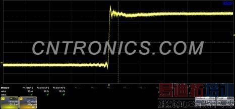 下图6和图7显示的是WaveMaster 816Zi示波器分别采用Flat Mode和Eye Mode响应优化方式对同一阶跃脉冲实际测量结果的对比,可以看出,Flat Mode可以得到更快的上升时间,但过冲和前冲也都相对较大;Eye Mode 测量的上升时间较慢,但过冲和前冲也都相对较小。