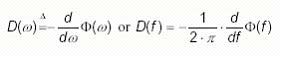 理想的线性相位概念源自群延迟概念。群延迟有时称为包络延迟,不应把它与相位延迟混淆。群延迟和相位延迟都与系统的相位相关,公式如下: