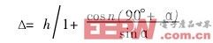 (5)将h、n代入公式,即得棱圆度Δ,当2α=120°时: