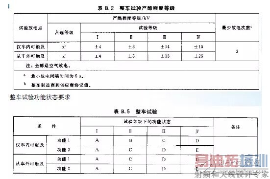 对被试设备的所有试验点,以规定的正极性和负极性电源等级进行放电试验之后,被试设备应进行全部可用的功能试验,一般情况下其功能状态应与下表B 规定的一致(下表摘自GB/T19951-2001),具体功能状态应根据试验计划规定的等级。