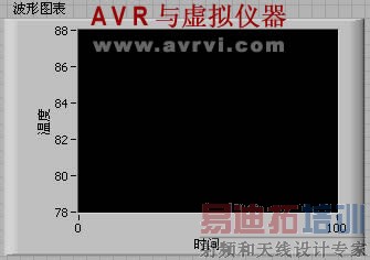 - 新建一个VI,在前面板上放置一个波形图表,将Y轴的刻度标签改为“温度”,然后选择隐藏图例,然后将Y轴坐标的自动调整取消,如图: