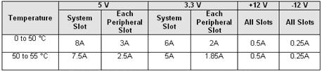 和冷却和散热系统一样,稳定和充足的电源供给也是确保系统测量精度的必要条件,仪器厂商应该提供在不同电压情况下机箱电源所能提供的最大电流和相应的功率参数,尤其是在极限温度情况下(如