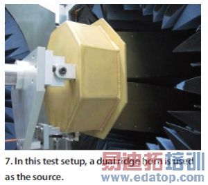 在锥形暗室中,源天线非常关键,特别是在较高频率时(如2GHz以上),此时暗室行为对细小的变化更加敏感(图4)。整个锥体的角度和处理也很重要。角度必须保持恒定,因为锥体部分角度的任何变化将引起照射误差。因此测量时保持连续的角度是实现良好锥形性能的关键。