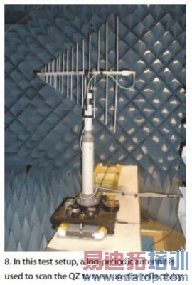 图8:图中测试采用一个对数周期天线来扫描QZ以测量反射率。