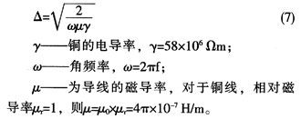 由此可得出△为0.2755 m,导线线径应小于穿透深度的两倍。