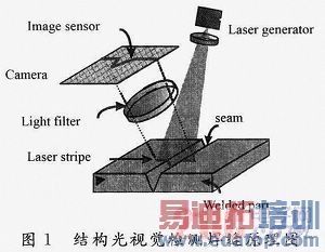 激光焊接质量检测方法主要有3种:通过无损检测手段检测焊后焊缝应力集中和内部气孔缺陷;通过检测激光焊接过程中出现的熔池和小孔形态评估焊缝质量;通过结构光视觉检测焊后焊缝表面缺陷。结构光视觉方法检测焊后焊缝表面特征,可直接检测出焊缝表面的凹度、凸度和表面气孔等缺陷,具有快速性、实时性、检测精度高等明显优势。