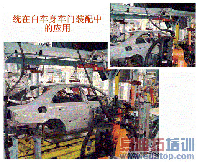 图6所示为激光在线检测技术在白车身车门装配中的应用实例。其中机器人控制下的抓拾器与激光在线检测系统通过总线控制,形成一个闭环系统,通过激光在线检测系统在门盖装配过程中的实时动态丈量,实时地把所丈量数据与处理器中的标准数模数据对比,给出丈量值与理论值的偏差,实时调整抓拾器的安装位置,使其达到一个设计的最佳值,此时门与侧围的平度和间隙均会达到一个最佳值。