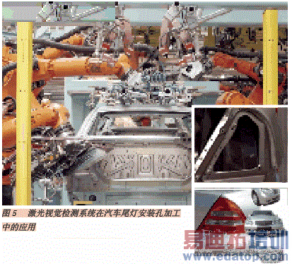 除此之外,激光视觉检测系统还被广泛应用于焊装生产中,如门盖装配、前端切削焊接以及车身后部后尾灯定位孔的形成等。