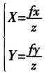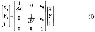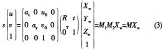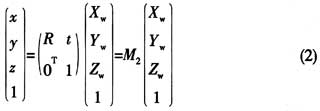 其中,M1为摄像机内参数,M2为摄像机外参数。确定某一摄像机参数称为摄像机定标。