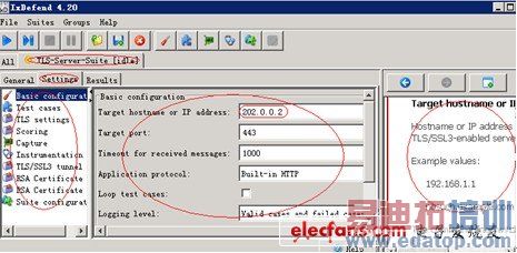 配置TLS Server测试所需要的参数,包括被测试设备IP、TLS服务端口、超时时间等,如图2所示。