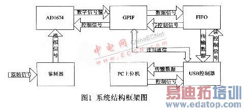 本数据采集系统的设计主要分为硬件和软件设计两部分。其中硬件设计主要包括信号调理、A/D转换、数据存储、控制部分以及USB接口部分等实现内容。